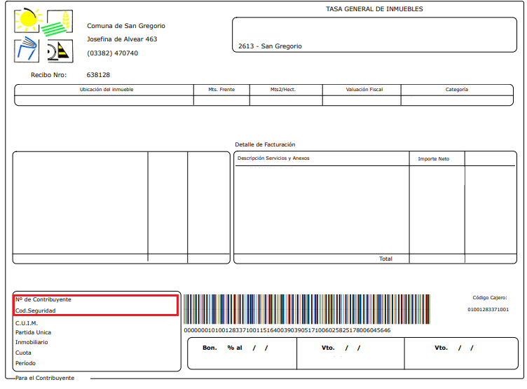 Estos datos están en los comprobantes emitidos por la Comuna de tu partida o tu contribuyente y servirán para mostrar todas tus relaciones con la comuna.